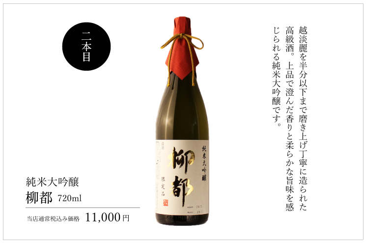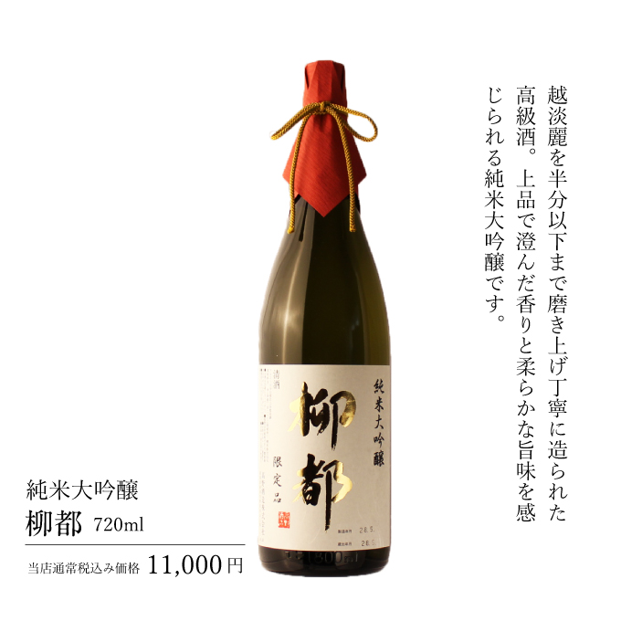 失われゆくふるさとの宝をなんとかしたい」そんな思いからスタートした"棚田プロジェクト"の第0弾【純米大吟醸 岩魚】。県内では生産量1%未満と希少な新潟県産のクラシックコシヒカリを使用した純米大吟醸です。芳醇な旨味と軽い飲み口で食事との相性も抜群です。 柳都は新潟県産の酒造好適米新品種「越淡麗」を使用した純米大吟醸。米を半分まで磨き上げ丁寧に造り上げられた高級酒です。上品で甘く澄んだ香りをもち、旨味に広がりと柔らかさ。その旨味はまろやかに膨らんで、そしていさぎよく消える絶品となっております。