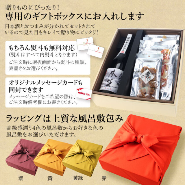 | 製品名: | 日本酒 おつまみセット 長期熟成生原酒 大吟醸【お福 本生】720ml×清酒漬け珍味4種セット |