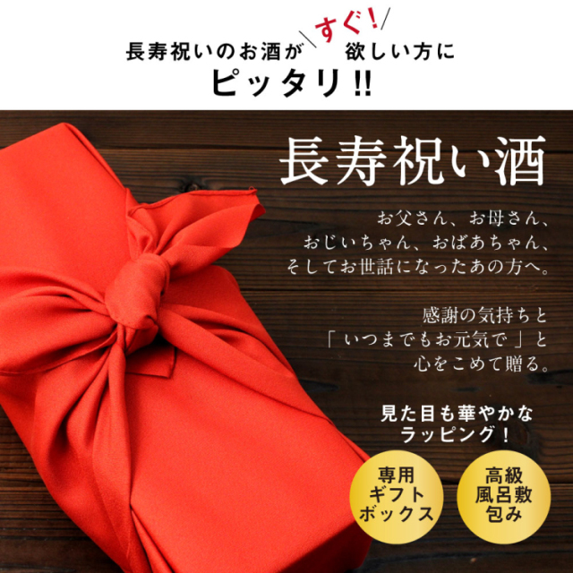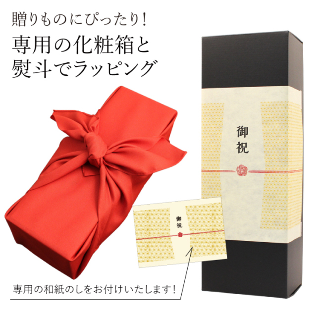 イタリアを代表するプロセッコのスパークリングワインを使用!ボトルに還暦祝い専用のラベルを貼り、ラッピングは化粧箱に専用熨斗を巻き、その上から還暦のテーマカラーでもある赤色の風呂敷で素敵に梱包します。