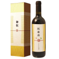 お祝いの席にふさわしいワインとして当店在籍のソムリエが選んだ赤ワインは、新潟県弥彦村・石川ぶどう園の大粒ぶどうを使用し、新潟市西蒲区のワイナリー<レスカルゴ>で丁寧に醸造された1本。