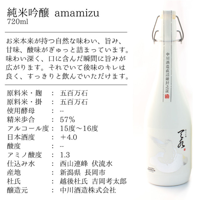 | 製品名: | ご飯のお供 日本酒セット 惣菜 常温瓶詰めシリーズ (越後肉味噌・さけ焼漬ほぐし・鶏とえのきのすき焼き) 純米吟醸 あまみず 720ml |