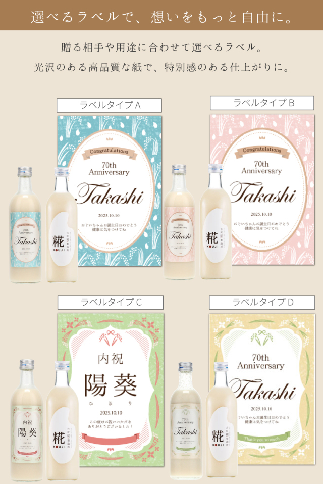 お名前を添えて贈る、世界にひとつだけの甘酒ギフト。