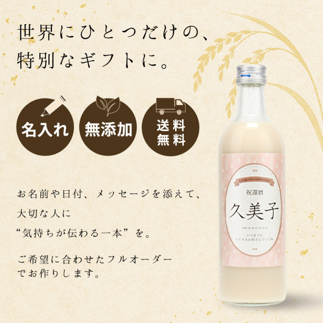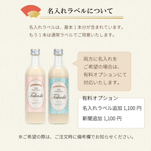 名入れ甘酒 注意事項:ラベルの制作、一部商品の取り寄せの為、発送に1〜2日かかりますので、即日出荷には対応しておりません。予めご了承くださいませ。