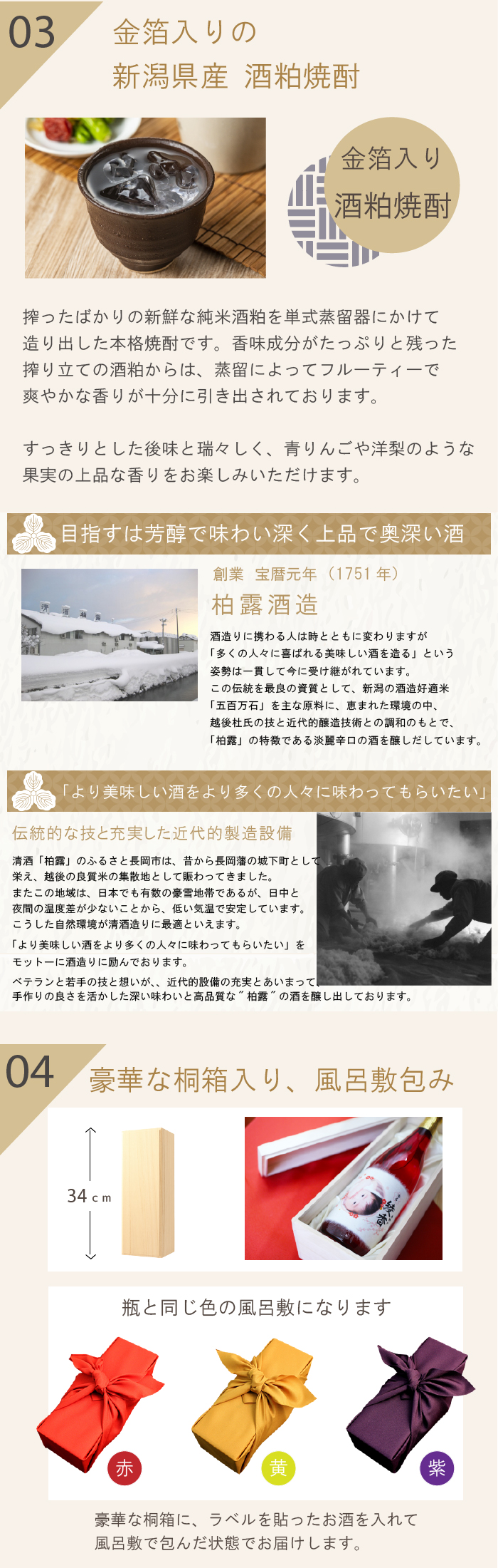 新潟県産の酒粕焼酎に金箔を入れて、お祝いにピッタリの焼酎!