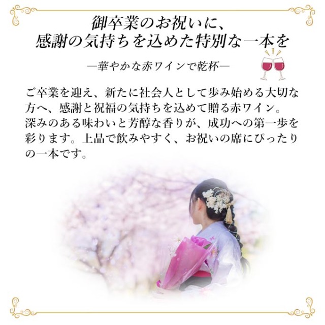 | 製品名: | 【お祝い酒 卒業祝い】赤ワイン 750ml |