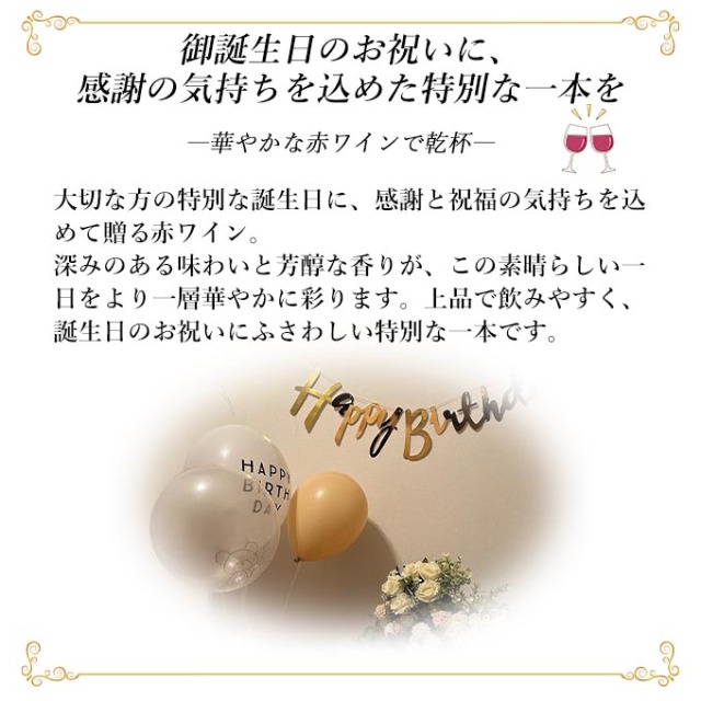 | 製品名: | 【お祝い酒 誕生日祝い】赤ワイン 750ml |