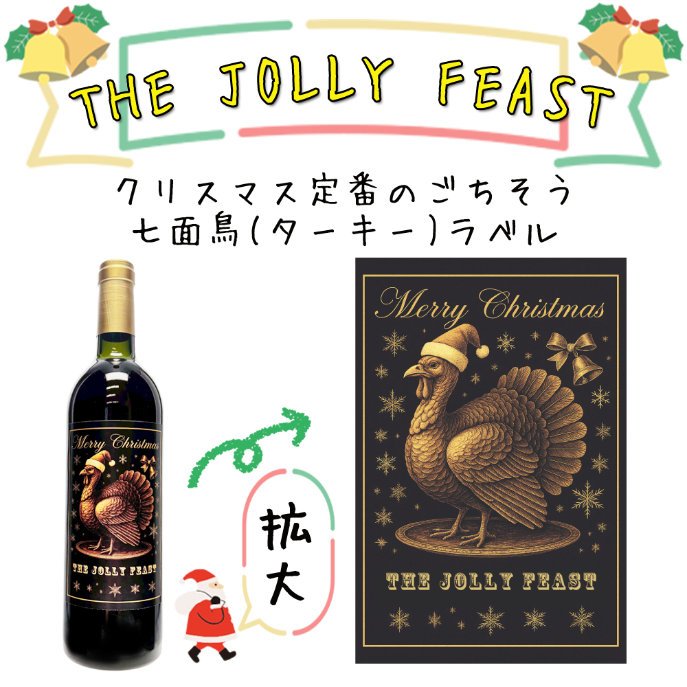 陽気なターキー(七面鳥)ラベルのクリスマス限定赤ワイン。