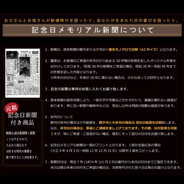 TOP長寿祝い酒 古希祝い(70歳) 古希祝いに贈る名入れ酒 720ml 赤ワイン樽熟成の梅酒 送料無料-桐箱入り-高級風呂敷包み-記念日の新聞付き 価格: ¥10,800 (税込) 販売期間: メーカー: (株)幻の酒 【必須】: 20歳以上であることを確認してください。(未成年者の酒類購入は法律で禁止されています) 選択してください 20歳以上です 右上小文字(基本色:朱色): 中央大文字(基本色:墨色): 左下小文字(基本色:墨色): 記念日の新聞の年号(西暦)をお選びください。: 大正・昭和はこちら 選択してください X新聞不要 ▼大正はここから▼ 大正01年,西暦1912年 大正02年,西暦1913年 大正03年,西暦1914年 大正04年,西暦1915年 大正05年,西暦1916年 大正06年,西暦1917年 大正07年,西暦1918年 大正08年,西暦1919年 大正09年,西暦1920年 大正10年,西暦1921年 大正11年,西暦1922年 大正12年,西暦1923年 大正13年,西暦1924年 大正14年,西暦1925年 大正15年,西暦1926年 ▼昭和はここから▼ 昭和01年,西暦1926年 昭和02年,西暦1927年 昭和03年,西暦1928年 昭和04年,西暦1929年 昭和05年,西暦1930年 昭和06年,西暦1931年 昭和07年,西暦1932年 昭和08年,西暦1933年 昭和09年,西暦1934年 昭和10年,西暦1935年 昭和11年,西暦1936年 昭和12年,西暦1937年 昭和13年,西暦1938年 昭和14年,西暦1939年 昭和15年,西暦1940年 昭和16年,西暦1941年 昭和17年,西暦1942年 昭和18年,西暦1943年 昭和19年,西暦1944年 昭和20年,西暦1945年 昭和21年,西暦1946年 昭和22年,西暦1947年 昭和23年,西暦1948年 昭和24年,西暦1949年 昭和25年,西暦1950年 昭和26年,西暦1951年 昭和27年,西暦1952年 昭和28年,西暦1953年 昭和29年,西暦1954年 昭和30年,西暦1955年 昭和31年,西暦1956年 昭和32年,西暦1957年 昭和33年,西暦1958年 昭和34年,西暦1959年 昭和35年,西暦1960年 昭和36年,西暦1961年 昭和37年,西暦1962年 昭和38年,西暦1963年 昭和39年,西暦1964年 昭和40年,西暦1965年 昭和41年,西暦1966年 昭和42年,西暦1967年 昭和43年,西暦1968年 昭和44年,西暦1969年 昭和45年,西暦1970年 昭和46年,西暦1971年 昭和47年,西暦1972年 昭和48年,西暦1973年 昭和49年,西暦1974年 昭和50年,西暦1975年 昭和51年,西暦1976年 昭和52年,西暦1977年 昭和53年,西暦1978年 昭和54年,西暦1979年 昭和55年,西暦1980年 昭和56年,西暦1981年 昭和57年,西暦1982年 昭和58年,西暦1983年 昭和59年,西暦1984年 昭和60年,西暦1985年 昭和61年,西暦1986年 昭和62年,西暦1987年 昭和63年,西暦1988年 昭和64年,西暦1989年 記念日の新聞の年号(西暦)をお選びください。: 平成・令和はこちら 選択してください X新聞不要 ▼平成はここから▼ 平成01年,西暦1989年 平成02年,西暦1990年 平成03年,西暦1991年 平成04年,西暦1992年 平成05年,西暦1993年 平成06年,西暦1994年 平成07年,西暦1995年 平成08年,西暦1996年 平成09年,西暦1997年 平成10年,西暦1998年 平成11年,西暦1999年 平成12年,西暦2000年 平成13年,西暦2001年 平成14年,西暦2002年 平成15年,西暦2003年 平成16年,西暦2004年 平成17年,西暦2005年 平成18年,西暦2006年 平成19年,西暦2007年 平成20年,西暦2008年 平成21年,西暦2009年 平成22年,西暦2010年 平成23年,西暦2011年 平成24年,西暦2012年 平成25年,西暦2013年 平成26年,西暦2014年 平成27年,西暦2015年 平成28年,西暦2016年 平成29年,西暦2017年 平成30年,西暦2018年 ▼令和はここから▼ 令和01年,西暦2019年 令和02年,西暦2020年 令和03年,西暦2021年 令和04年,西暦2022年 令和05年,西暦2023年 【月】を選択: 選択してください 1月 2月 3月 4月 5月 6月 7月 8月 9月 10月 11月 12月 【日】を選択: 選択してください 1日 2日 3日 4日 5日 6日 7日 8日 9日 10日 11日 12日 13日 14日 15日 16日 17日 18日 19日 20日 21日 22日 23日 24日 25日 26日 27日 28日 29日 30日 31日 フォトフレーム(有料+2000円): フォトフレームとまとめて購入 選択してください ×希望しない まとめて購入(¥2,000) 熨斗の種類をお選びください。: 選択してください X熨斗不要 ▼紅白蝶結び(一般御祝用)▼ お父さんありがとう(紅白蝶結び) 御祝(紅白蝶結び) 御中元(紅白蝶結び) 内祝(紅白蝶結び) 感謝(紅白蝶結び) 御礼(紅白蝶結び) 祝還暦(紅白蝶結び) 古希御祝(紅白蝶結び) 喜寿御祝(紅白蝶結び) 傘寿御祝(紅白蝶結び) 米寿御祝(紅白蝶結び) 卒寿御祝(紅白蝶結び) 白寿御祝(紅白蝶結び) 御年賀(紅白蝶結び) 御歳暮(紅白蝶結び) 無地(紅白蝶結び) 寿 (紅白蝶結び) お母さんありがとう(紅白蝶結び) その他(備考欄にお書き下さい) ▼紅白十本結び切り(結婚・婚礼祝用)▼ 寿 (紅白十本結び切り)(結婚・婚礼祝用) 感謝(紅白十本結び切り)(結婚・婚礼祝用) 御祝(紅白十本結び切り)(結婚・婚礼祝用) 内祝(紅白十本結び切り)(結婚・婚礼祝用) その他(紅白十本結び切り)(備考欄にお書き下さい) ▼紅白五本結び切り(快気祝・全快祝用)▼ 快気祝(紅白五本結び切り) その他(紅白五本結び切り)(備考欄にお書き下さい) ▼紅白五本結び切り(御見舞・祝御全快・御伺い用)▼ 御見舞(紅白五本結び切り:のし無し) その他(紅白五本結び切り:のし無し)(備考欄にお書き下さい) ▼紫銀の結び切り(香典返し・法要用)▼ (紫銀の結び切り) その他(紫銀:備考欄にお書き下さい) ▼黄銀の結び切り(香典返し・法要用)▼ 志(黄銀の結び切り) その他(黄銀:備考欄にお書き下さ